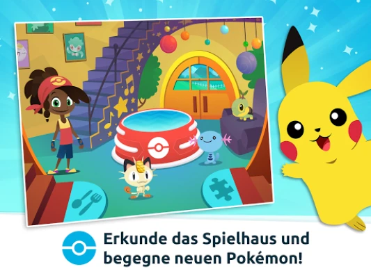 Entdecken Sie Pokémon-Spielhaus, wo Ihr Kind mit süßen Pokémon interagiert. Erkunden Sie aufregende Orte wie Turm, Pausenraum und Spielzimmer. Altersgerechte Aktivitäten wie Pokémon-Pflege und Sternenhimmel-Erkundung begeistern junge Fans.