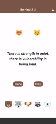 Tauchen Sie ein in eine Welt voller ermutigender Affirmationen, sorgfältig kuratiert, um Ihr inneres Gleichgewicht zu fördern und Ihre Stimmung zu verbessern. Sollte Ihnen eine einzelne Botschaft nicht genügen oder Sie suchen nach sofortiger neuer Inspiration, steht Ihnen jederzeit der intuitive „Erneuern"-Button zur Verfügung. Mit nur einem Tippen enthüllt die App eine frische, stärkende Botschaft, bereit, Ihren Tag zu erhellen. Es ist stets der richtige Augenblick, um sich selbst mit einem Moment der Positivität zu beschenken und Ihre Gedanken auf das Gute auszurichten.