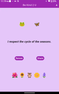 Entdecken Sie eine App, die Ihnen hilft, freundlich zu sich selbst zu sein. Erhalten Sie jederzeit positive und aufmunternde Worte. Gestalten Sie Ihr Erlebnis mit eigenen Hintergrundbildern oder wählen Sie aus 4 saisonalen Designs, um die App-Farben anzupassen. Ihre Quelle für tägliche Ermutigung und Selbstfürsorge.